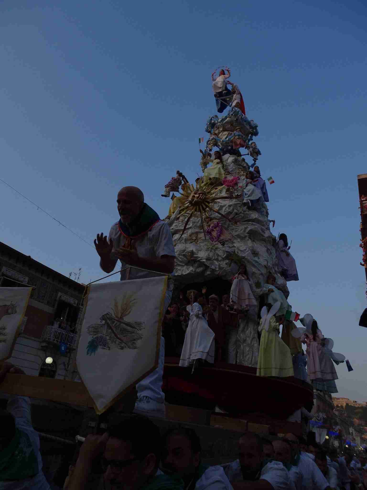 Tutto si è poi concluso nel migliore dei modi, con il carro sacro della Varia che ha percorso trionfalmente e senza intoppi il suo tragitto su corso Garibaldi. Sotto di esso, come sempre, gli ‘Mbuttaturi, «vero esempio della Palmi migliore» per il primo cittadino, che ne ha elogiato dal palco non solo le doti di forza e caparbietà messe in mostra durante la “scasata”, ma anche tutto l’impegno profuso in iniziative di beneficenza nel corso di tutto l’anno.