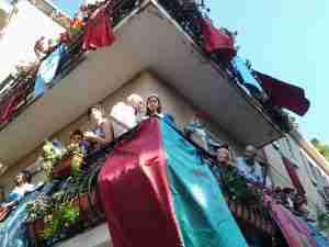 18.08: Il palio è al centro di Piazza primo maggio e inizia a girare. Rappresenta la benedizione della Madonna sulla città. In piazza c’è tantissima gente.
